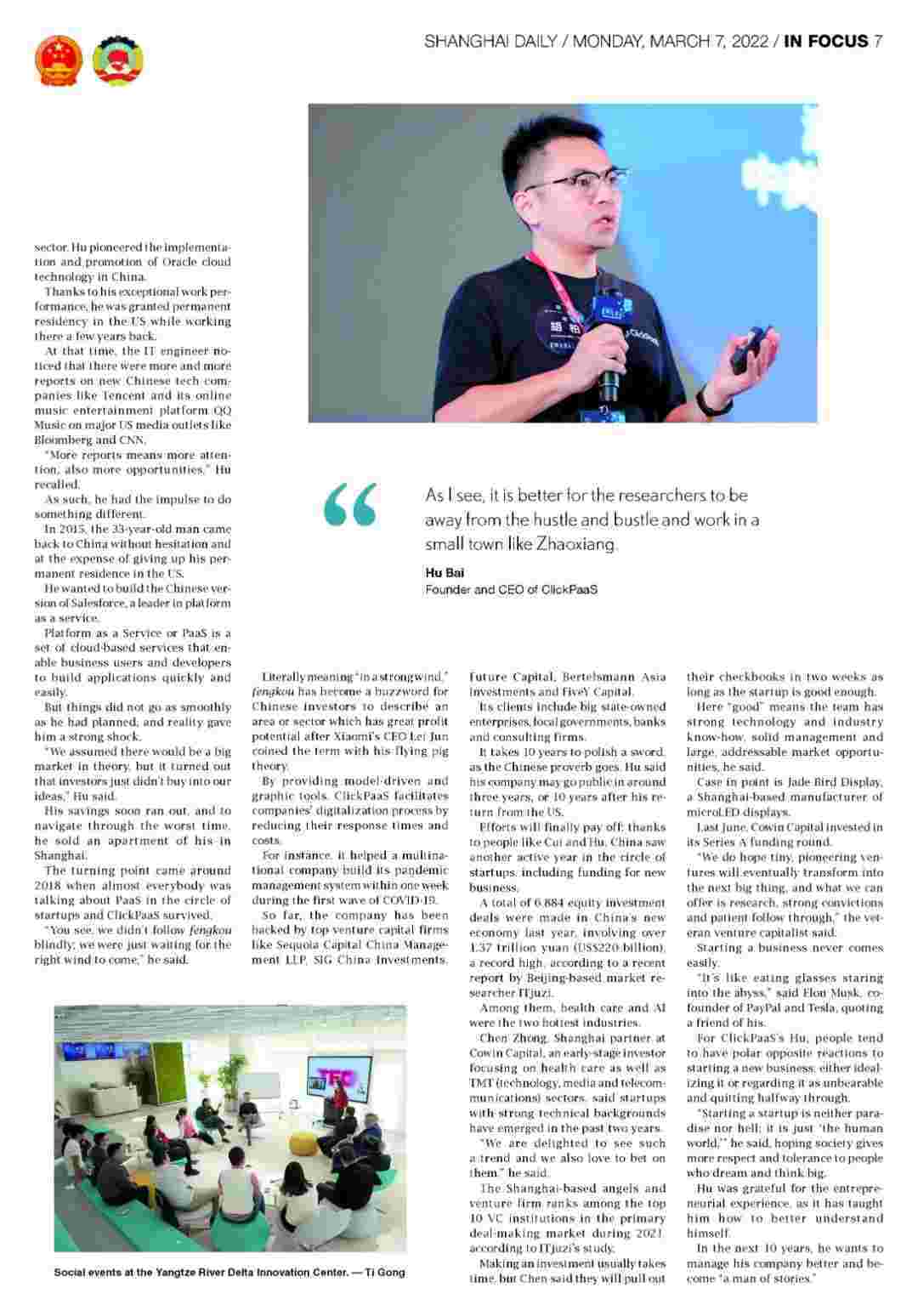 《上海日报》专访NO钱包创始人、、、CEO胡柏,,,,探究其创业背后的故事!!!