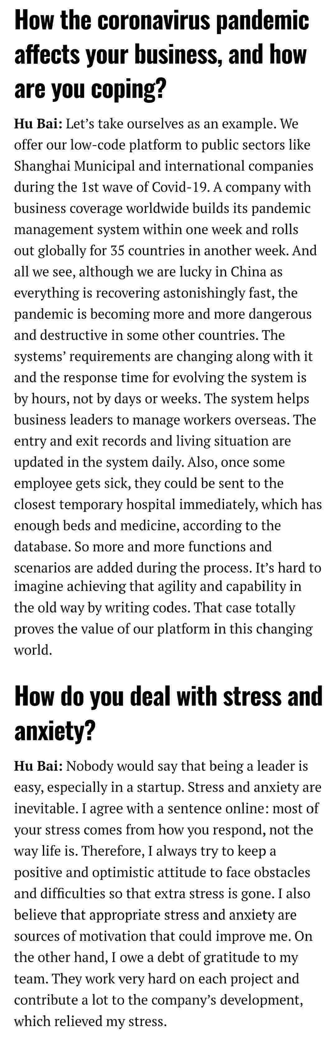 2021年年初,,,爱湃斯科技CEO胡柏受邀接受法媒Startup.info的专访,,,,与Startup info的读者分享了自己的创业经历、、以及低代码平台NO钱包的创新之处。。。